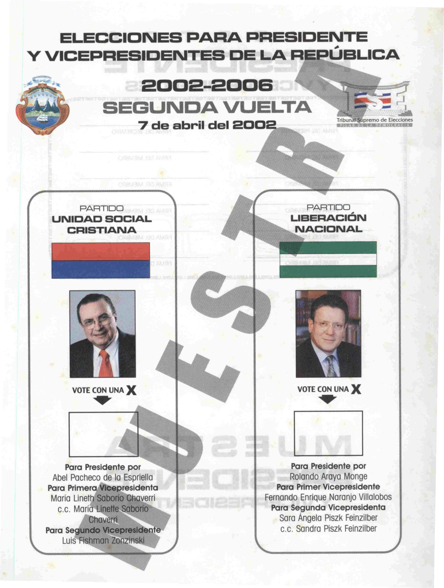 Papeletas para elecciones presidenciales de 1953 a 2018.